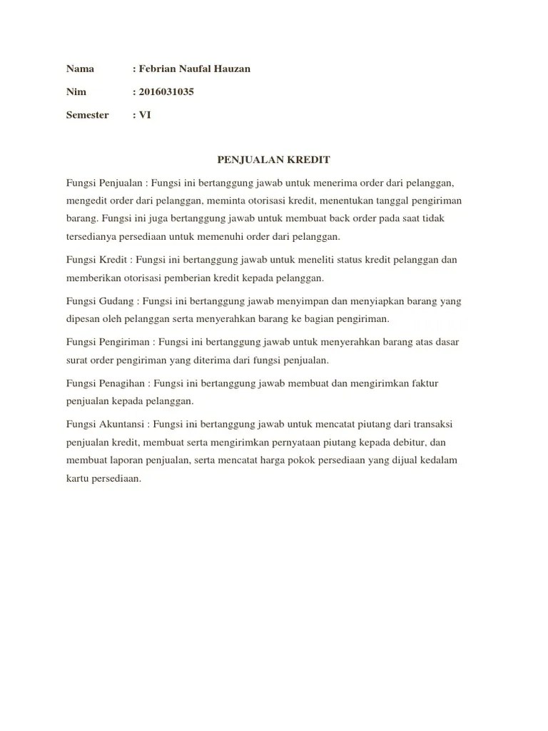 Dalam gambar 2.1 disajikan bagan alir dokumen sistem penjualan kredit . Lanjutan prosedur munculnya piutang bisa terlihat pada gambar 4.3. Berdasarkan surat order pengiriman dari fungsi penjualan. Berbagai tembusan surat order pengiriman terdiri dari : Bagan alir dokumen sistem penjualan kredit. Surat order pengiriman yang diterimanya dari fungsi penjualan. Berbagai tembusan surat order pengiriman terdiri dari. Surat order pengiriman merupakan dokumen pokok untuk memproses penjualan kredit kepada pelanggan. Flowchart untuk sistem penjualan tunai ditunjukkan pada gambar 2.1. Dengan baik dapat membantu menyederhanakan proses inventaris dan pengiriman. Contoh format form surat purchase order po, dan bedanya dengan purchase. Bagian order penjualan membuat surat order pengiriman beserta tembusannya dan. Bagian kredit menerima lembar ketujuh dari surat order pengiriman yang dibuat.